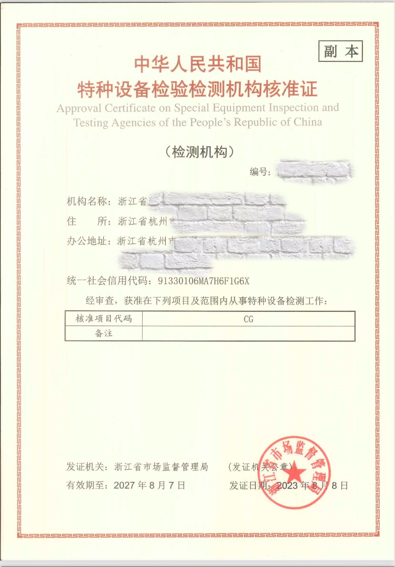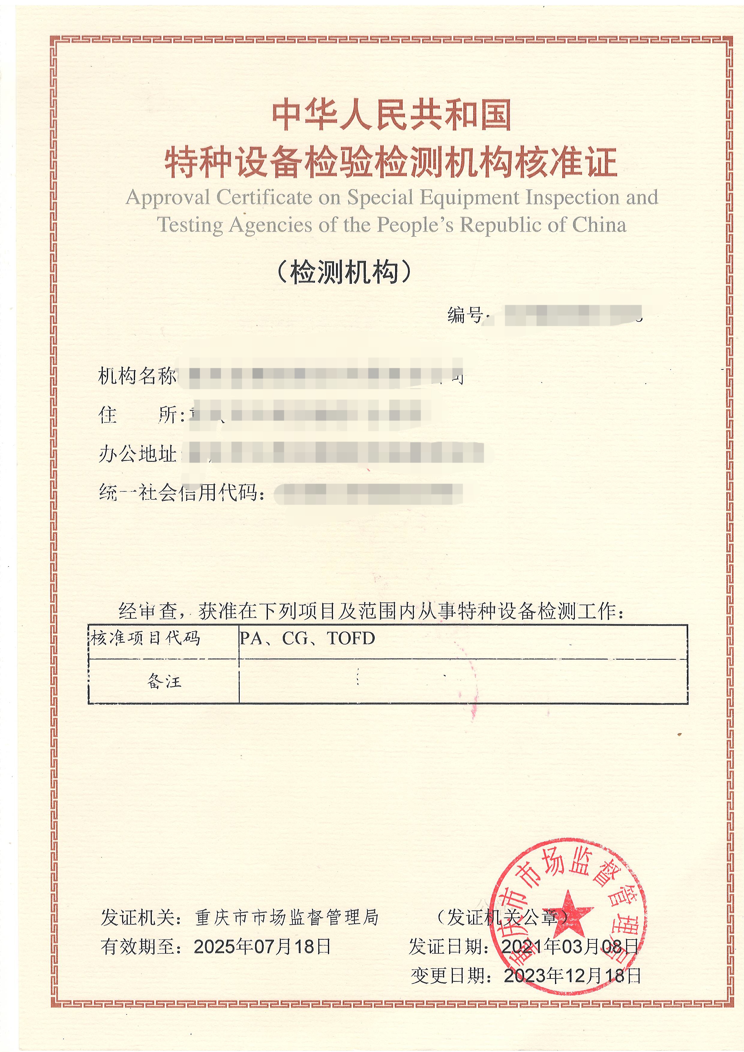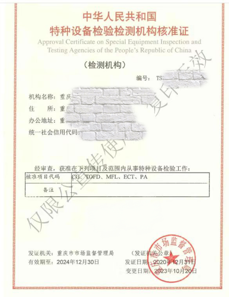 特种设备检验检测机构核准证